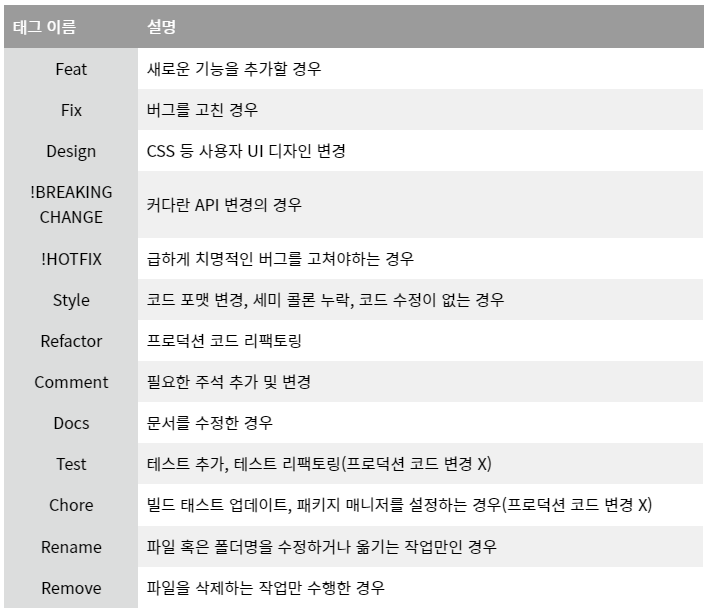 - 선택 사항이기 때문에 모든 커밋에 꼬리말을 작성할 필요 없음